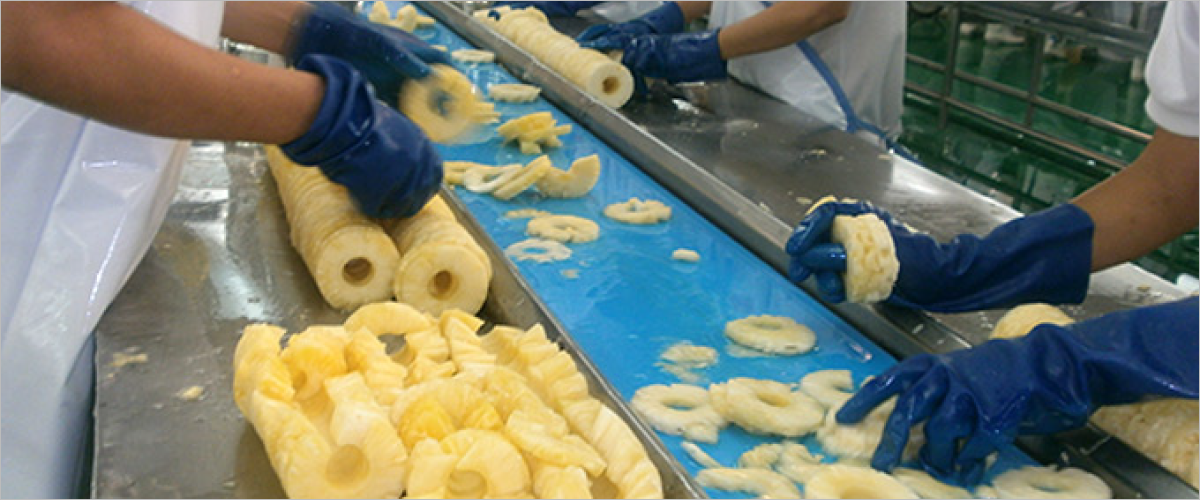 ボルタは、この劣化に耐える一連の素材を開発しました。ボルタのスライスおよび梱包ラインベルトは、果物加工および缶詰工場において非常に貴重な資産となります。パイナップルスライスは、多くの国で重要な作物であり、国際的なスーパーマーケットチェーンに代わって監査が行われています。ボルタの素材は、最高水準の効率と安全性を満たしていることが認められています。