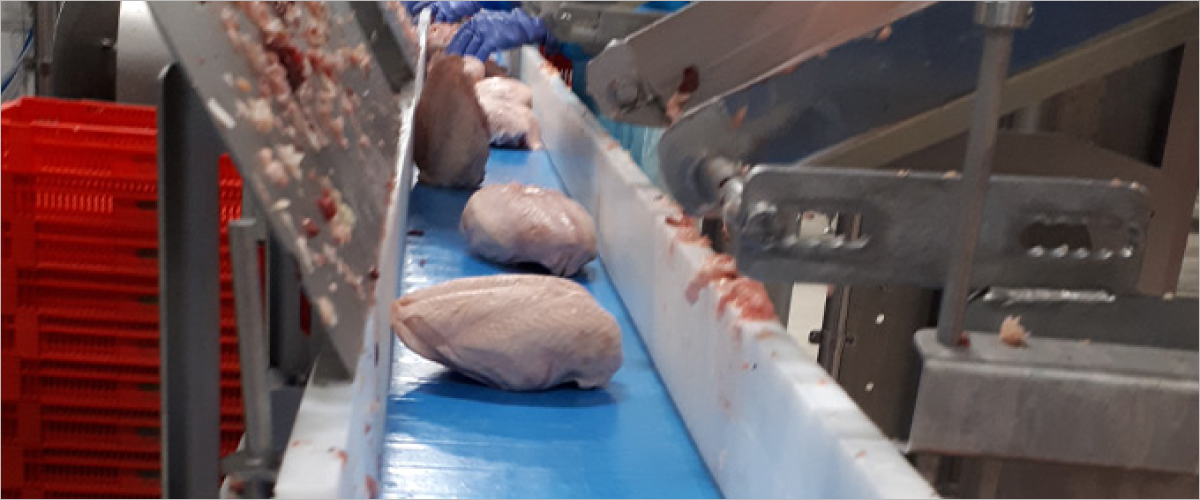 ヨーロッパの大手鶏肉ソーセージおよび食肉加工品メーカーは、50台以上のコンベヤーにボルタベルトを幅広く採用しています。搬送される製品は柔らかく、コンベヤ製造メーカーはボルタの長年のパートナーです。